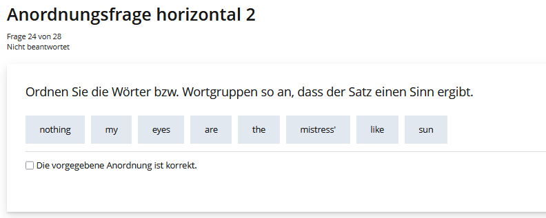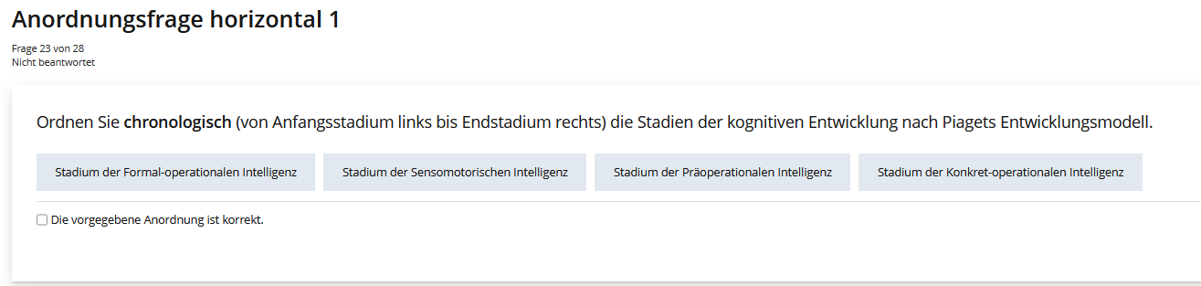Die Anordnungsfrage horizontal erlaubt es, die vorgegebenen Antworten durch das Verschieben in eine korrekte, definierte Reihenfolge zu bringen.