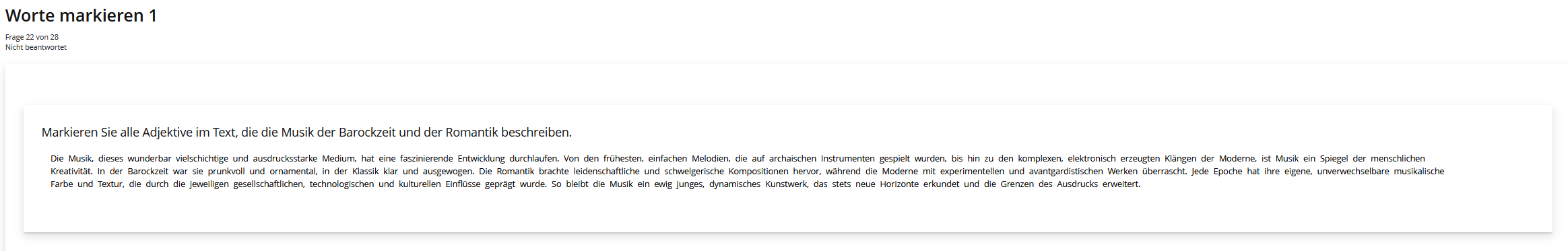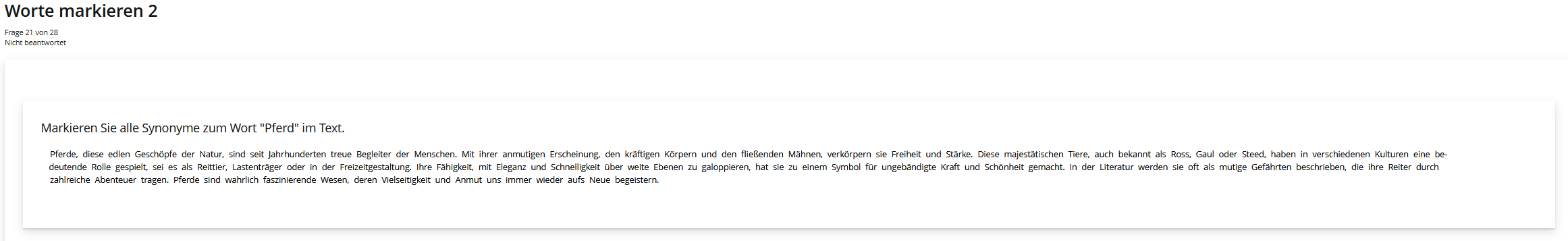So sieht eine Fehler/Worte markieren Frage im Test beispielsweise aus: