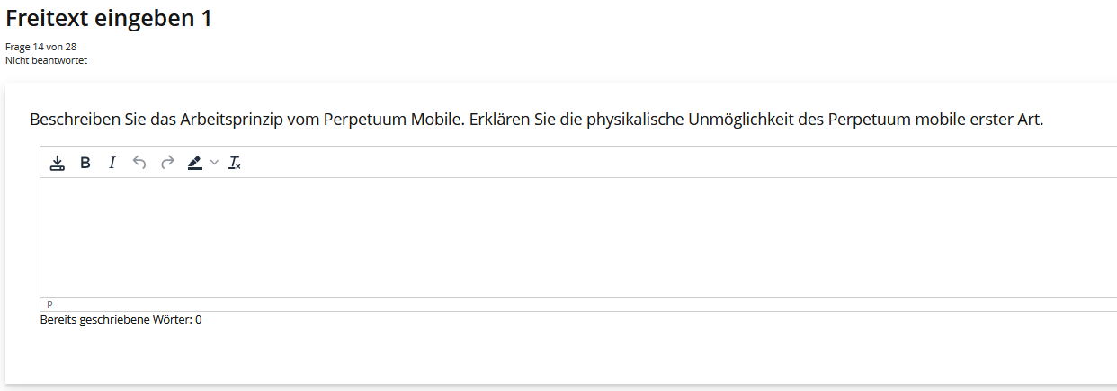 So sieht eine Freitext eingeben Frage im Test beispielsweise aus: